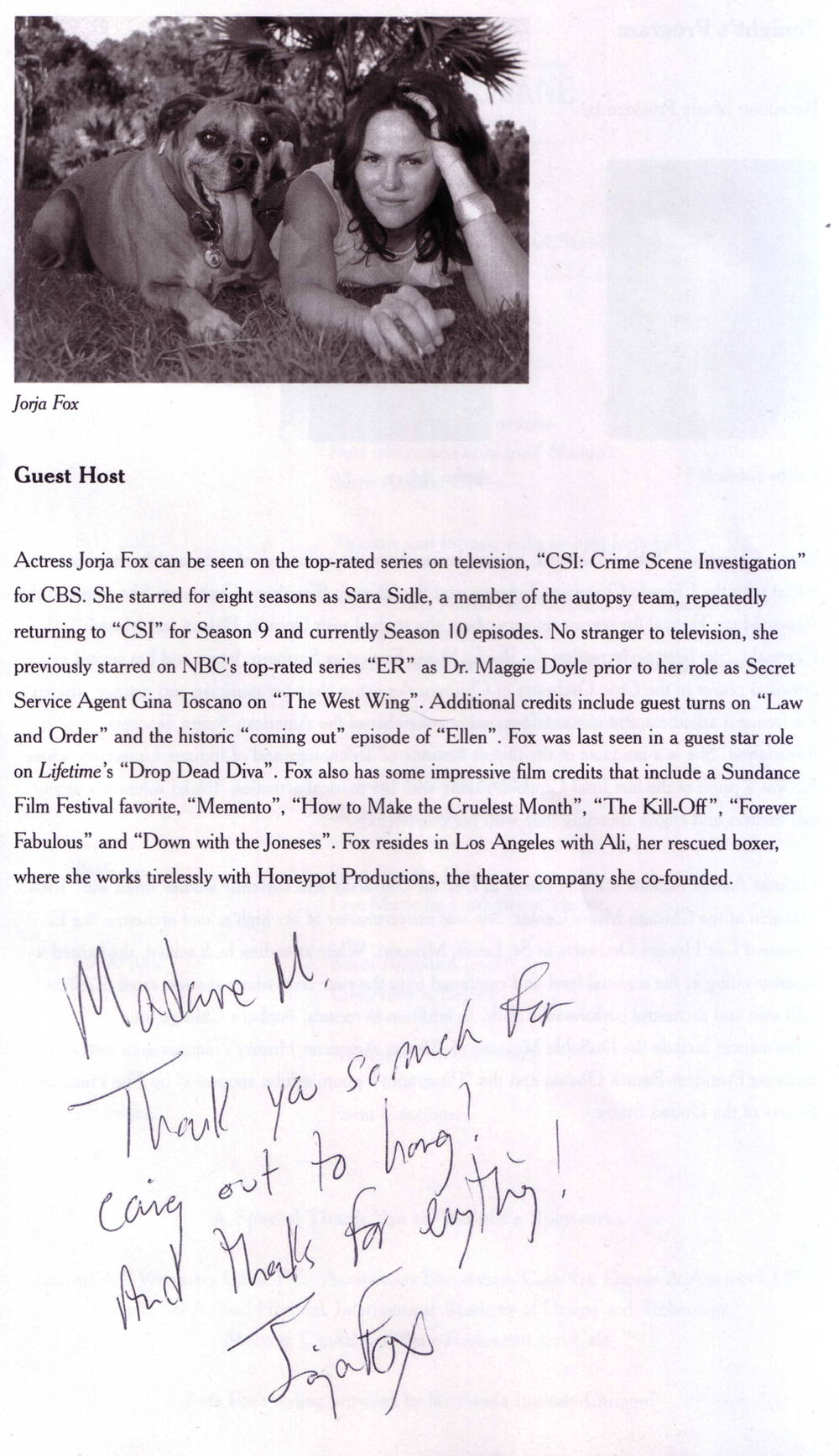 Jorja Fox invited me to meet her at the Humane Society’s Gala to end dog fighting in Chicago. Of course I went!