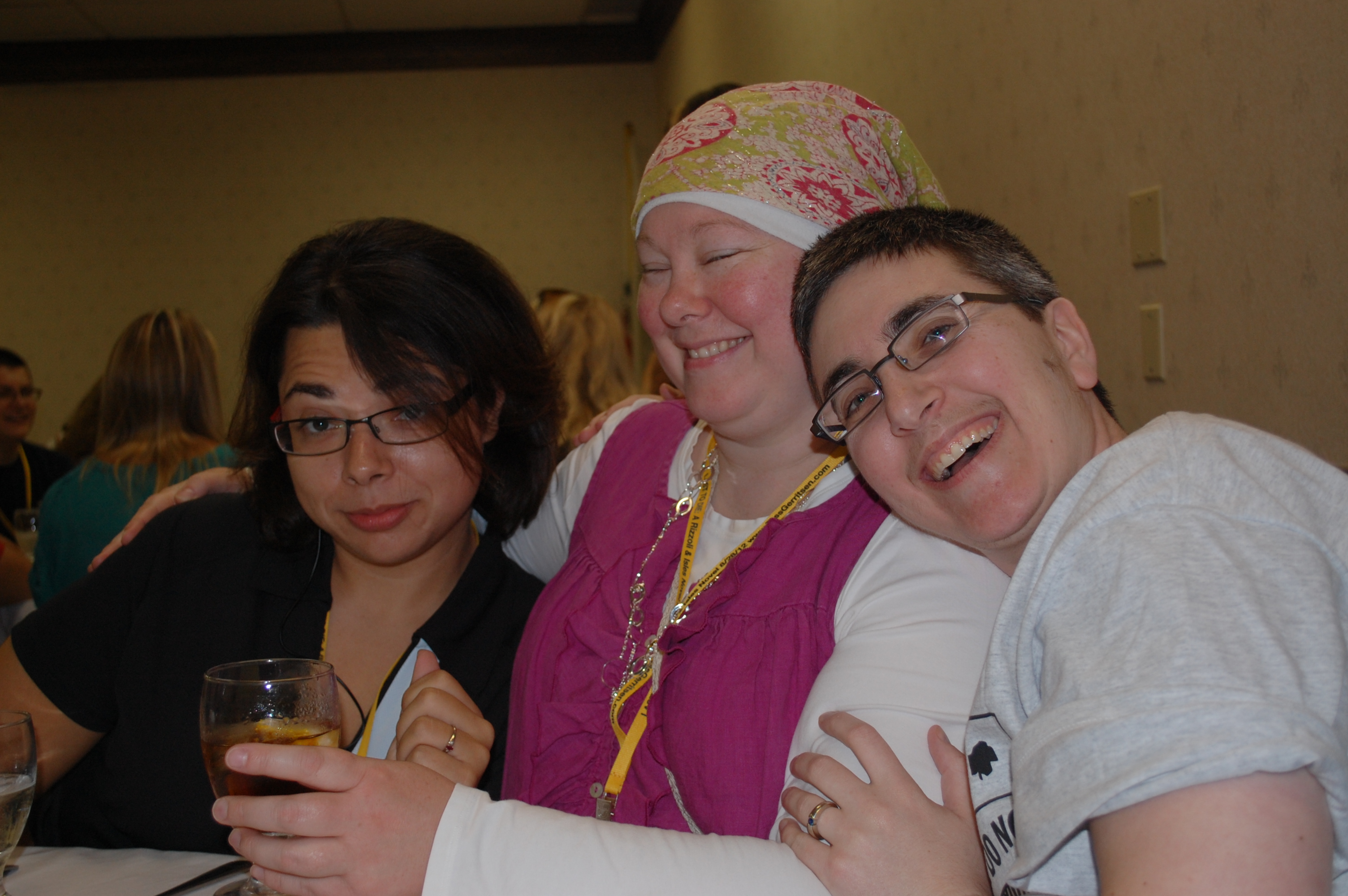 There is a bright note. This went from a Rizzoli & Islesconvention into a law enforcement/writing one. In fact, the insanely awesome Tess Gerritsen, who wrote the books the show is based on, has been our biggest hero, sticking around extra hours, coming up with ideas, giving away stuff like hats and books. Her assistant, Angie, is made of cool, and when I told her that one of the staff at the hotel was enamored of Tess, made sure they got to meet. The staffer was so delighted she said she was coming to drink with us that night. We’ve exchanged emails for when she comes to Chicago later this year.